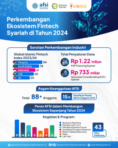 Untuk memperkuat ekosistem, AFSI telah mengadakan berbagai program strategis bersama 45 stakeholders, mendorong inovasi dan kolaborasi dalam sektor fintech syariah. Lebih lanjut, AFSI telah berkolaborasi dengan OJK dan asosiasi fintech menerbitkan “Peluncuran Panduan Strategi Anti-Fraud Penyelenggara Inovasi Teknologi Sektor Keuangan (ITSK)”, selain itu bersama UNDP Indonesia telah terbit kajian “Feasibility Study on Sustainability-Linked Financing” sebagai panduan inovasi fintech syariah dalam mendorong isu lingkungan serta dampak sosial. Komitmen ini mencerminkan visi AFSI dalam membangun ekosistem digital syariah yang inklusif dan berdaya saing.
